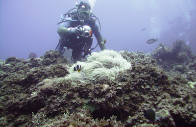We spent our final 2 dives of the day at the same spot, off of the NE coast of Tokashiki Island, just north of the main commercial port (where the ferries run). We had previously dived here with Captain Bruce & the C-Falcon when we discovered the "Looking Hole" formation.