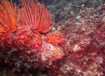 Betsy somehow spotted this pretty purple scorpionfish who wasn't big but sure was pretty: